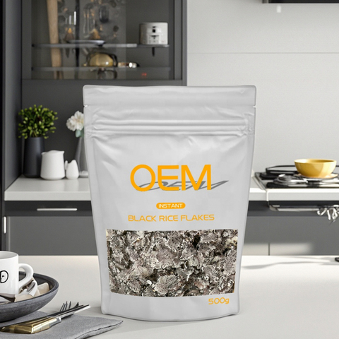 Muestras gratis Vegano Sin gluten Copos de avena negros de alta proteína 5 en 1 Grano Desayuno Cereal Energía Bolsa de alimentos Embalaje de botellas